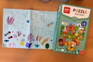 «Muchas donaciones, que se agradecen, por supuesto, eran de cosas que la gente descartaba. Pues, gente que tendría hijos ya mayores y enviaba cuentos, colecciones perfectas, o sea completas. Pero sí que es verdad que hay mucho material que no es atractivo ya para los niños. Mucho material repetido, libros de ‘Un cuento para cada día del año’, mucho material tipo propaganda, del tipo cuentos de Disney y colecciones de Salvat, etc, que regalaban o que se vendían por fascículos. Entonces, a pesar de que se puede aprovechar, no es la idea que nosotros llevamos en esta biblioteca. Lo que queremos es crear un espacio no de almacenamiento de libros y de biblioteca de consulta, si no de un aula de paz, de calma, de entretenimiento, en la que los niños puedan sentirse a gusto, felices y mostrarles que a través de la lectura y del juego didáctico y cooperativo, y de la creatividad, de actividades también artísticas pues también se encuentran estados emocionales en los que uno se satisface a sí mismo, proporcionarles un espacio seguro para esa auto expresión.»